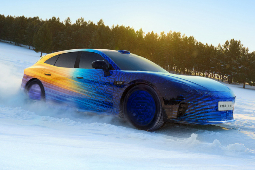 В прошлом месяце корпорация Huawei анонсировала запуск очередного автомобильного бренда Qijing, и тогда же появились тизеры его первенца — спортивного универсала. Теперь модель, пока не имеющая названия, продемонстрирована на фотографиях с зимних тестов: прототип изображен на снимках в яркой маскировочной пленке.
